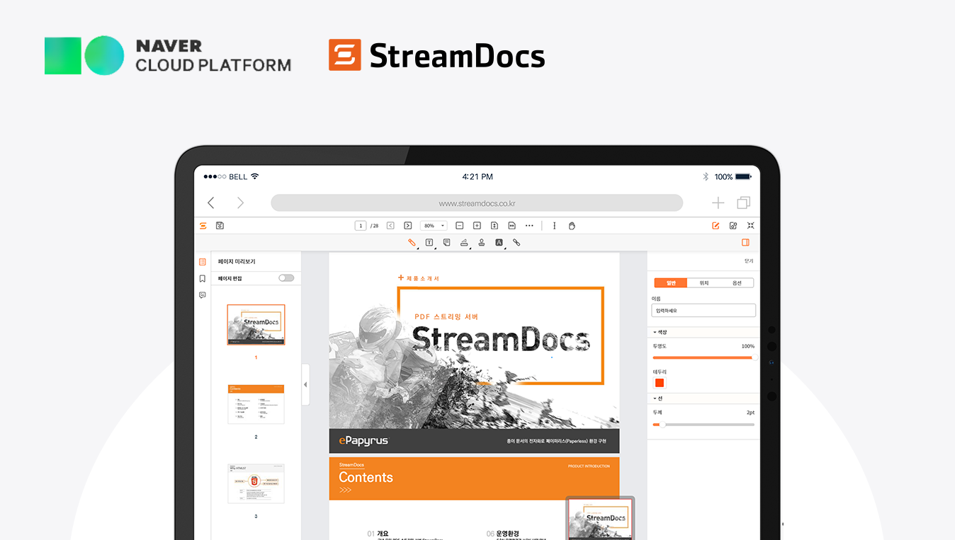 이파피루스의 대표 제품, 최고의 품질을 자랑하는 PDF 스트리밍 뷰어 ‘스트림닥스(StreamDocs)’가 네이버 클라우드 플랫폼 마켓플레이스에 등록되었습니다.