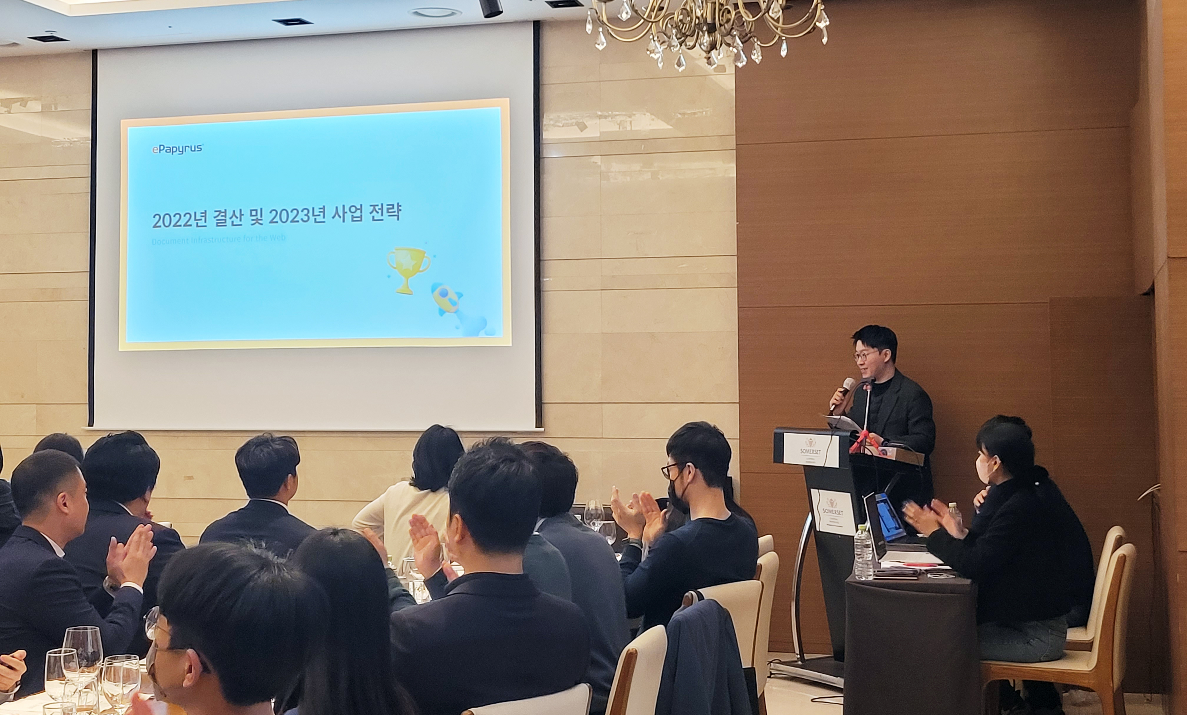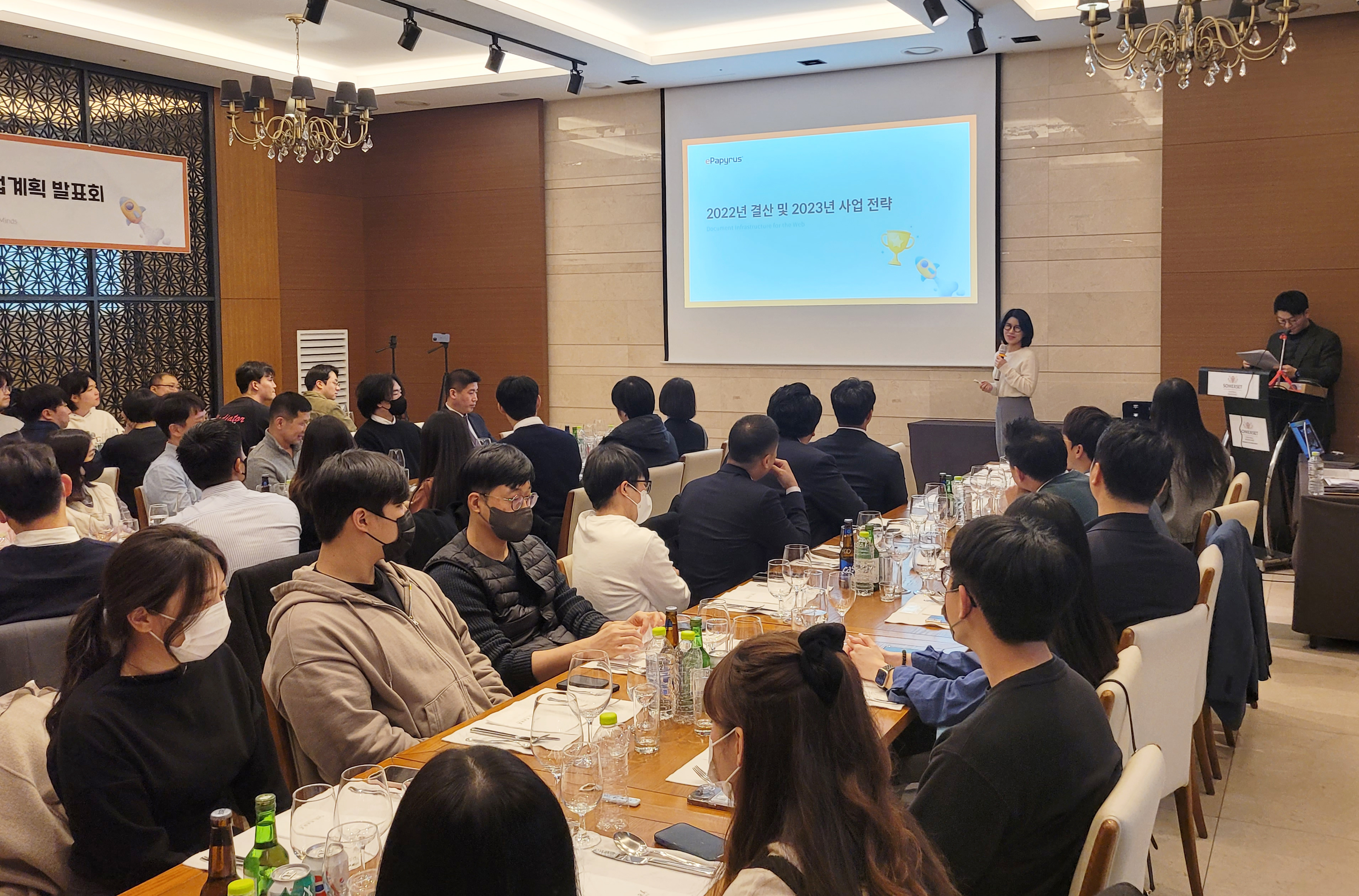 2023년 2월 7일, 분당의 한 호텔에서 이파피루스 한국 본사와 전 세계에 있는 자회사 임직원들이 모두 모여 인사를 나누고 올 한해의 계획을 공유했습니다.