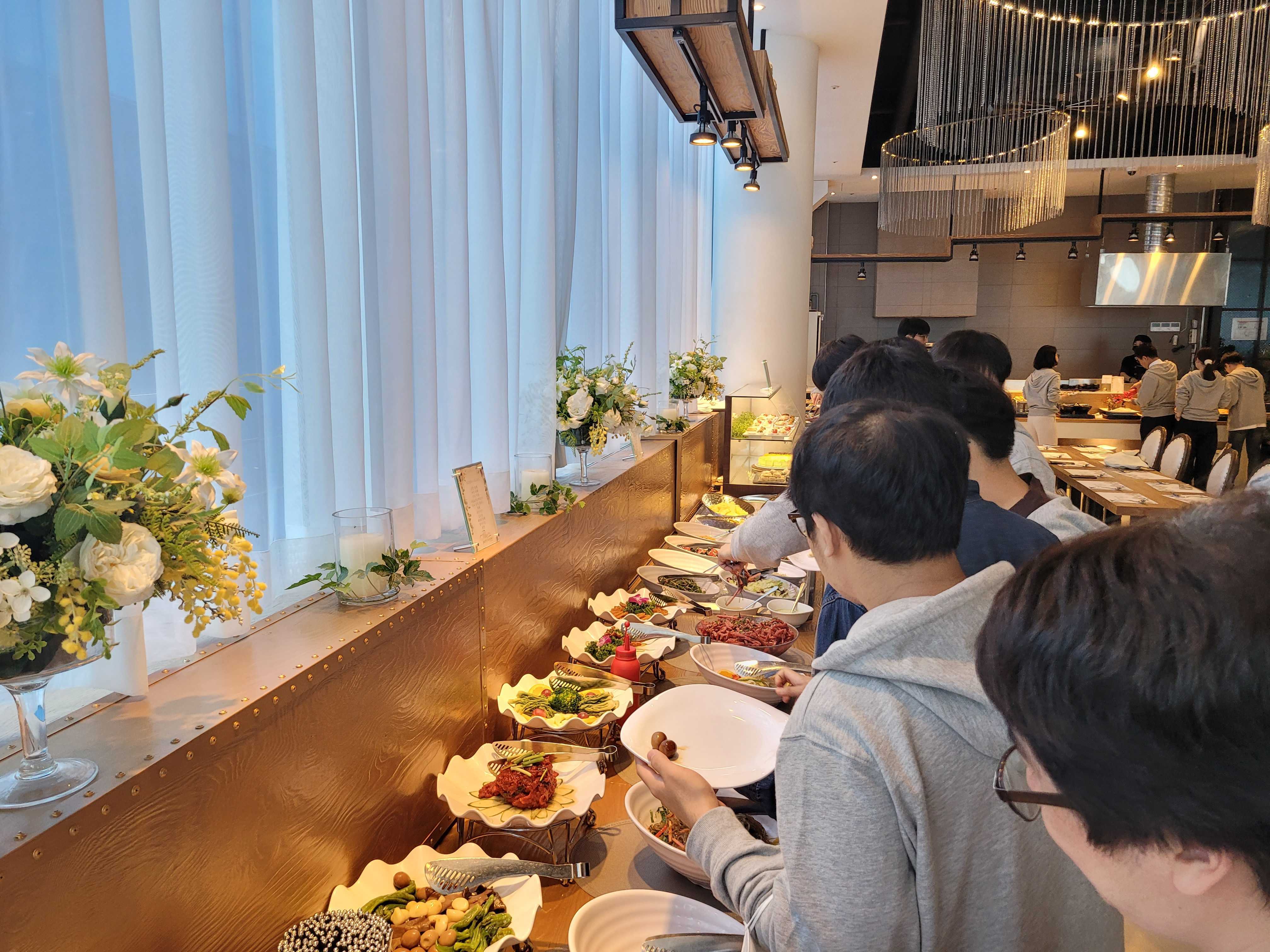 배고프셨을 직원분들을 위해 스테이크 무한리필을 포함한 뷔페식으로 식사를 준비했습니다.