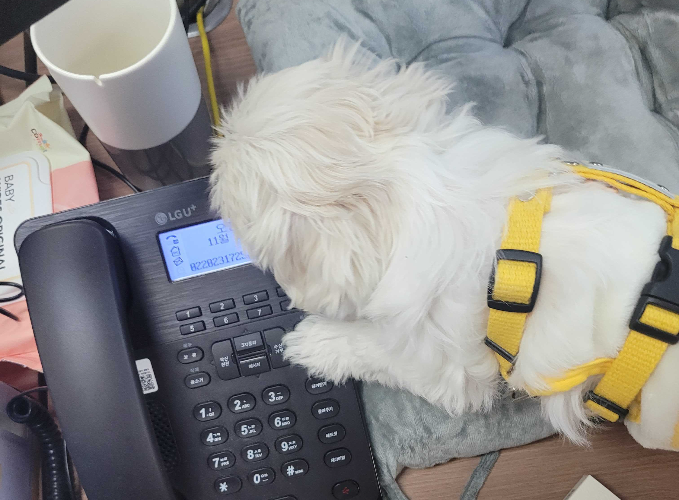 출근 1개월차 (당시 4개월) 전화 업무를 도와주는 모습
