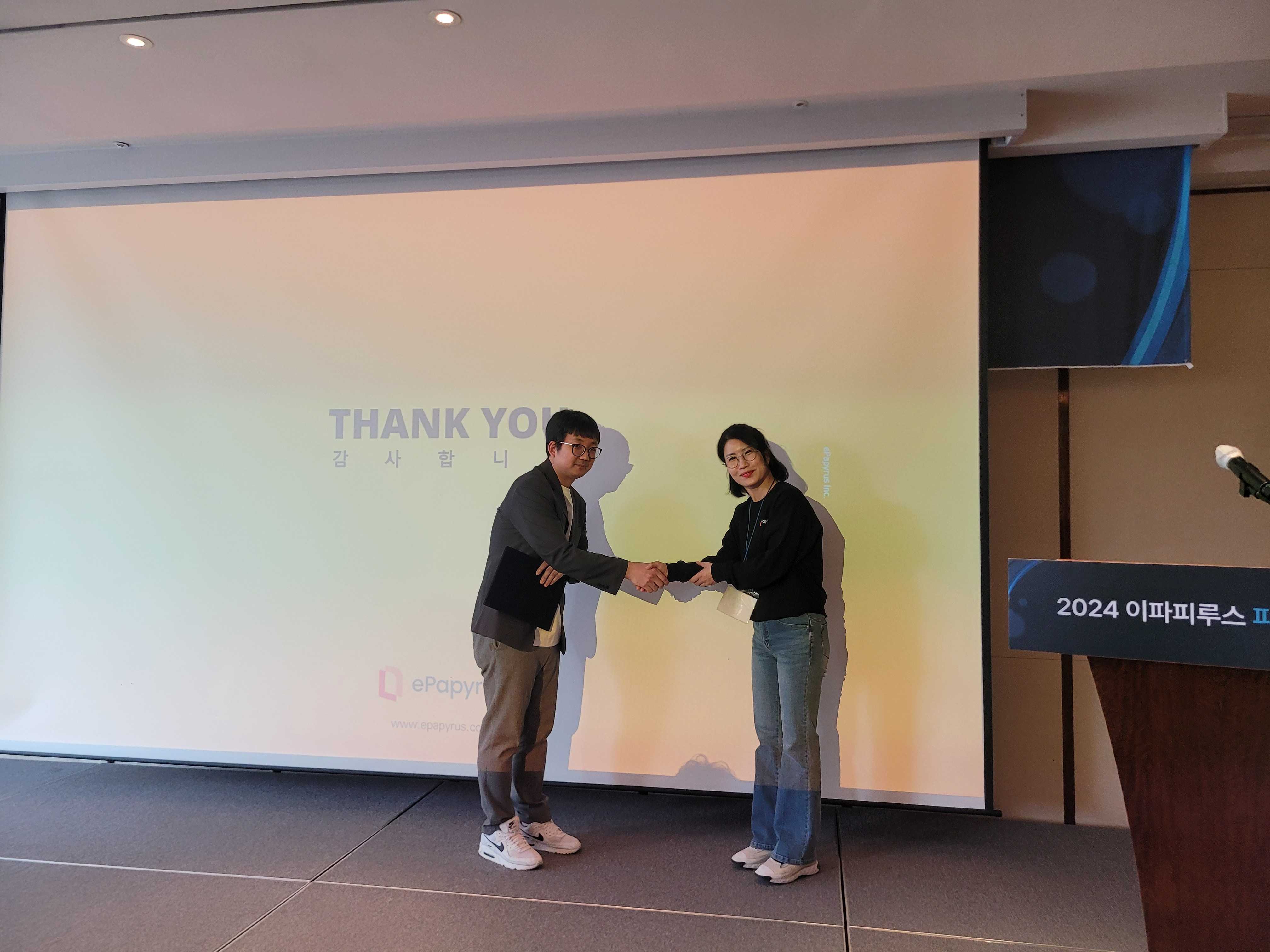 이번 파트너스 데이는 조금 더 특별하게 그간 이파피루스에 적극 협력해주시고 많은 공헌해주신 세일즈 파트너, 기술 파트너분께 감사장 시상도 진행했답니다🫶