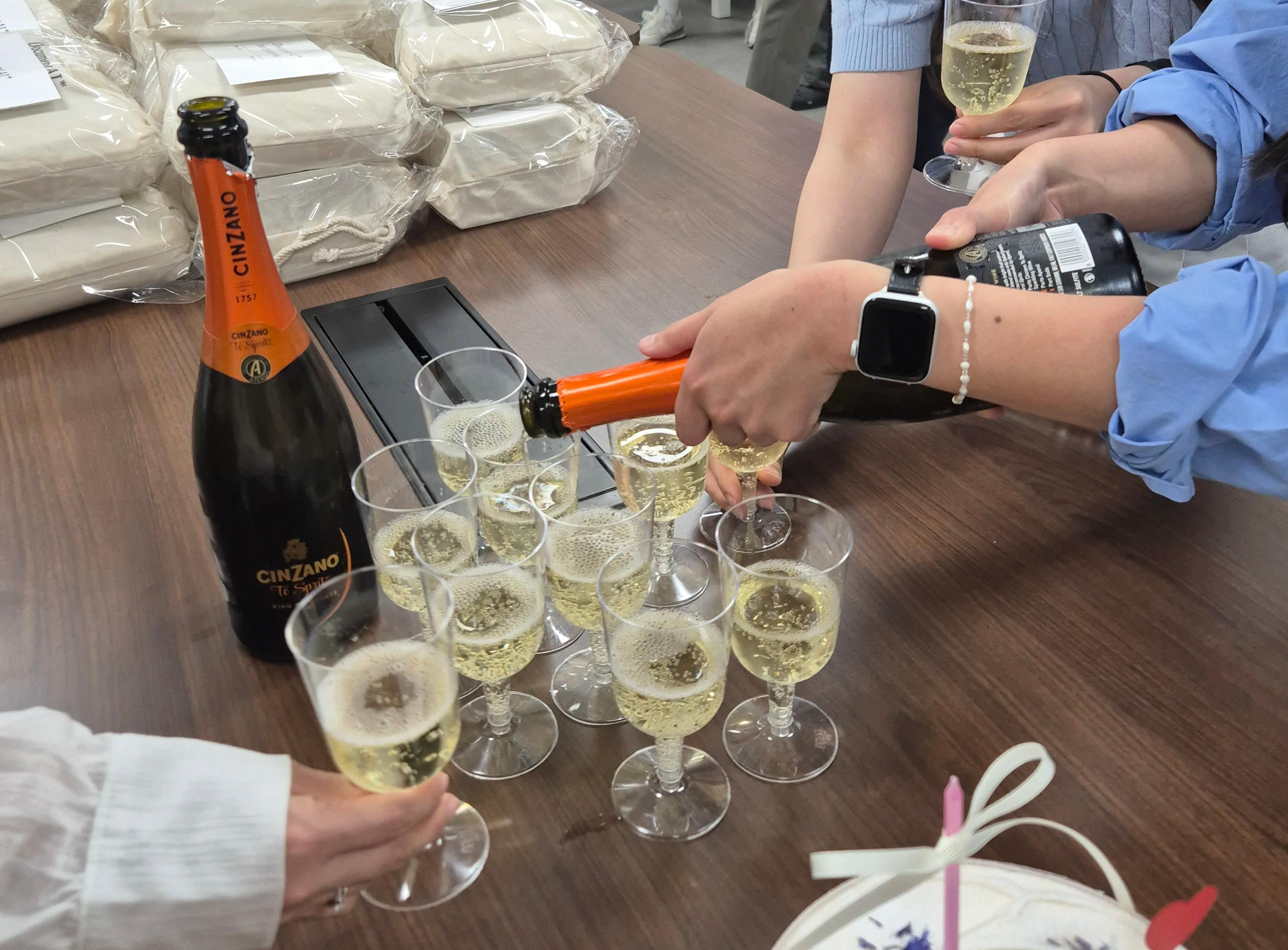 부사장님의 발표 이후 간단한 다과와 함께 샴페인 한잔🍾으로